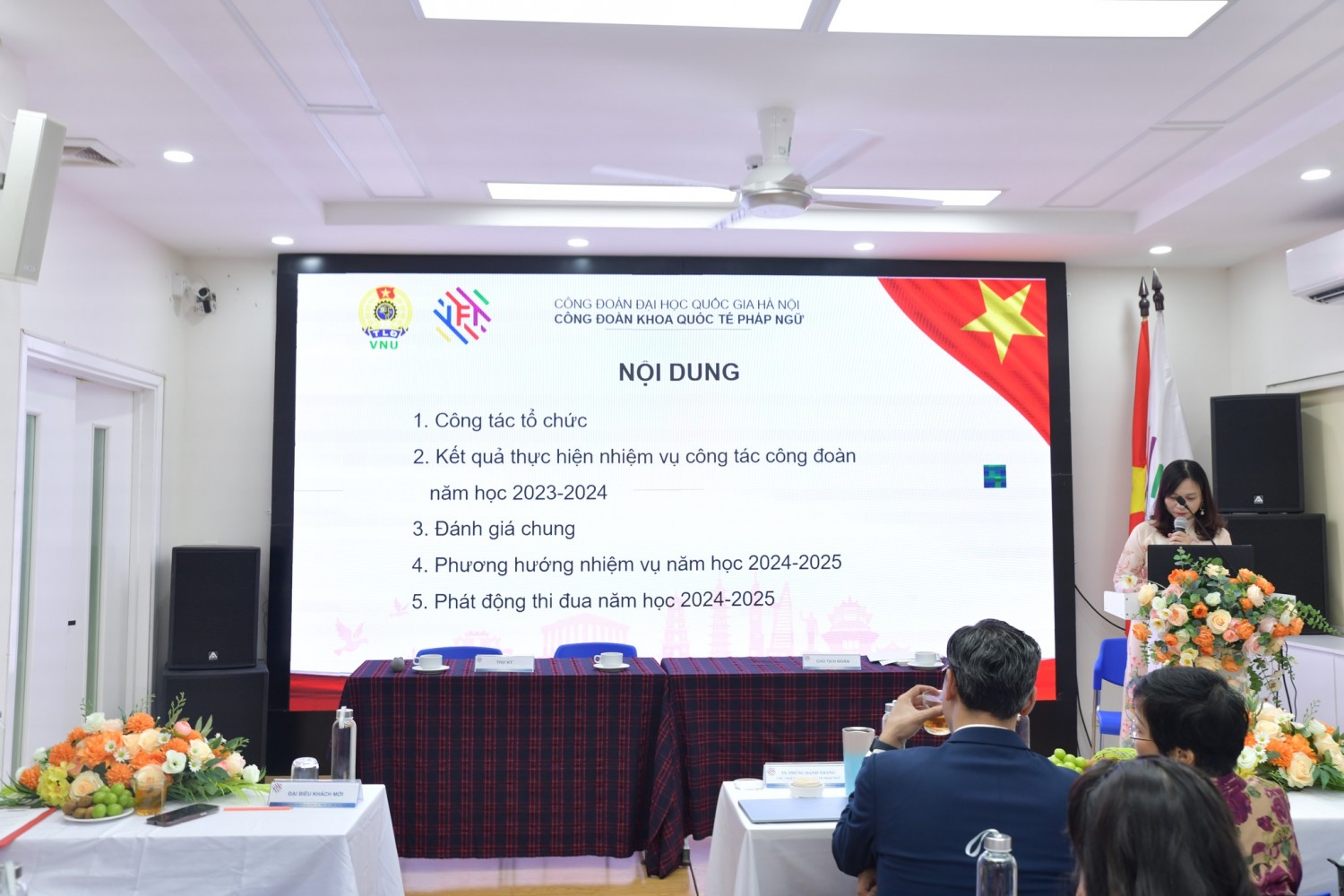 Tại hội nghị, ông Phùng Danh Thắng, Chủ nhiệm Khoa Quốc tế Pháp ngữ, đã trình bày báo cáo tổng kết năm học 2023-2024 và kế hoạch nhiệm vụ cho năm học tới. Báo cáo nhấn mạnh những thành tựu quan trọng mà VNU-IFI đã đạt được, đặc biệt là trong lĩnh vực đào tạo. Năm học 2023-2024, VNU-IFI đã lần đầu tiên ra mắt hai chương trình đào tạo Cử nhân Kinh doanh số và Truyền thông số, thu hút sự quan tâm lớn từ thí sinh và phụ huynh.